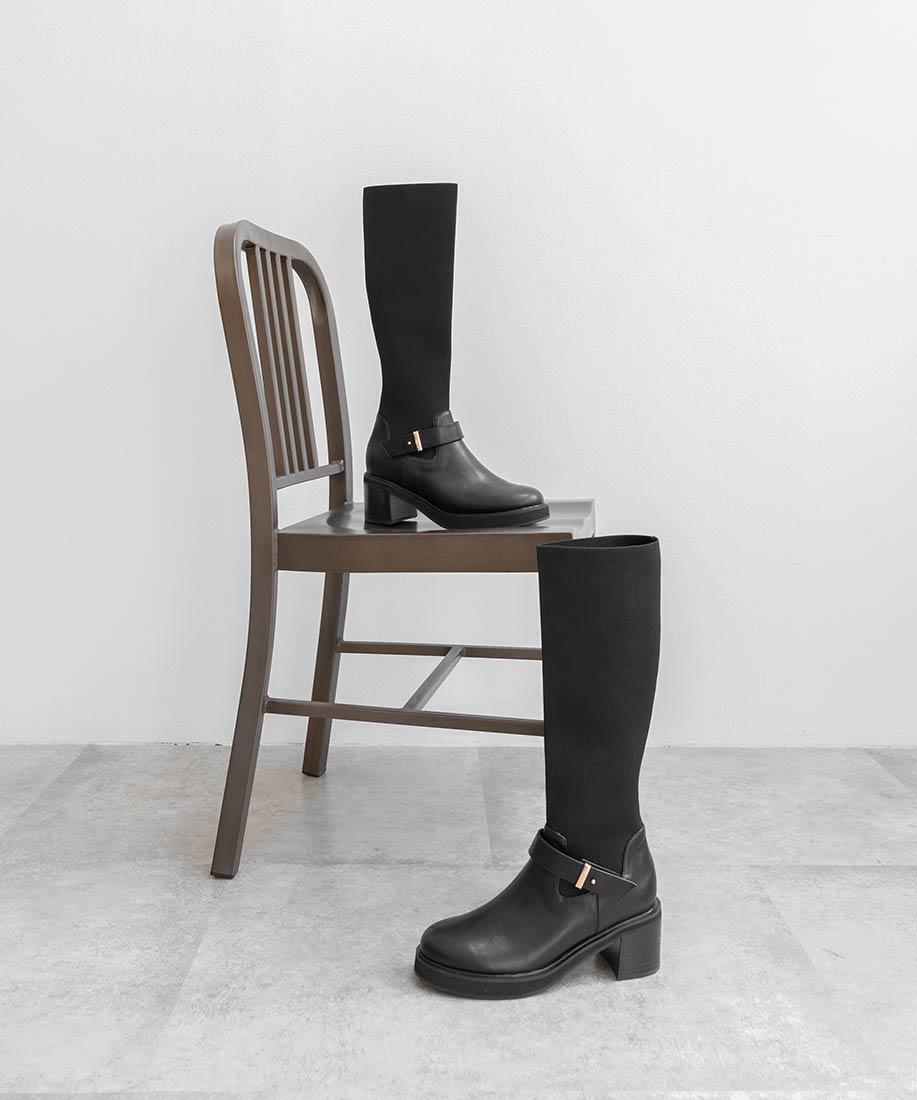 履くだけで今っぽい足元が完成するニットドッキングロングブーツ