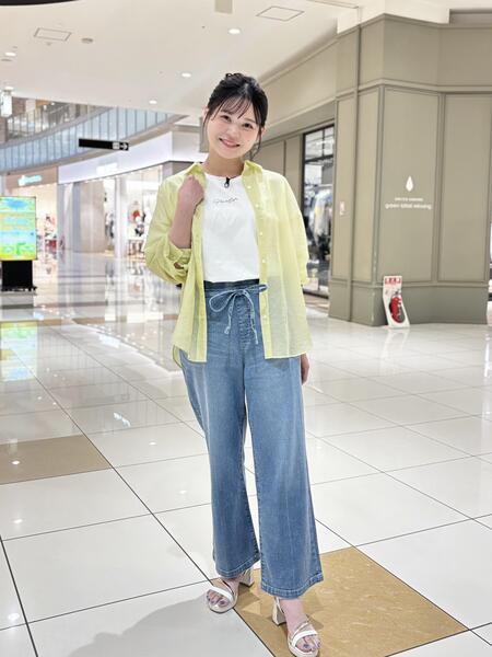 トレンドのシアーシャツを合わせています♪