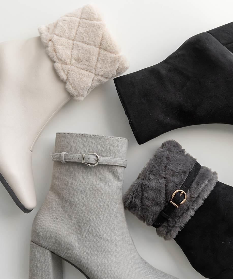 キルティングを施したファーが目を惹く4WAYショートブーツ